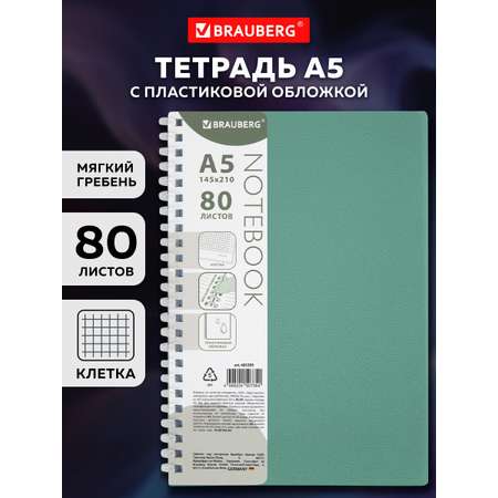 Тетрадь обложка пластик, А5 80л. гребень мягкий (силиконовый), клетка, BRAUBERG, зеленая – идеальный выбор для тех, кто ценит качество и удобство. Эта тетрадь для записей формата а5 отлично подходит как для школы, так и для офиса, позволяя вести структурированные записи благодаря линовке в клетку. Внутри тетрадки — 80 листов, выполненных из плотной офсетной бумаги, которая обеспечивает комфортное письмо без размазывания чернил. Прочная пластиковая обложка защищает от повреждений, а мягкий силиконовый гребень делает общую тетрадь 80 листов в клетку удобной в использовании каждый день. Компактный размер а5 позволяет всегда иметь под рукой надежную тетрадь на кольцах. Этот элемент канцелярии станет вашим верным помощником в учебе и работе, сочетая практичность и стиль.