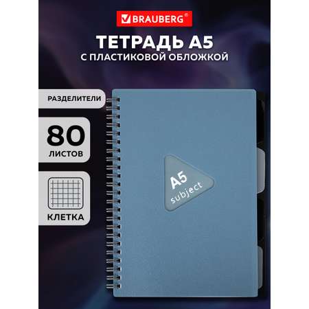 Тетрадь для записей BRAUBERG формата А5 – идеальный выбор для школы, офиса и повседневных заметок. Благодаря 80 листам в клетку и прочной пластиковой обложке, эта тетрадка обеспечивает надежную защиту содержимого и комфортное письмо на качественной бумаге. Удобный металлический гребень гарантирует надежное скрепление листов, а четыре разделителя помогут легко организовать записи и быстро находить нужную информацию в общей тетради 80 листов в клетку. Компактная и практичная, тетрадь на кольцах А5 отлично помещается в рюкзак или сумку, что делает её незаменимой в наборе канцелярии для старшеклассников, студентов и офисных сотрудников. Эта тетрадь для записей сочетает стиль и функциональность, превращая ежедневное письмо в удобное и приятное занятие!