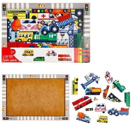 Пазл 1TOY Город машин сортер деревянный