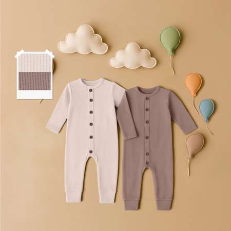 Комбинезон на пуговицах 2 шт Rant Waffy 3-92 milk+brown