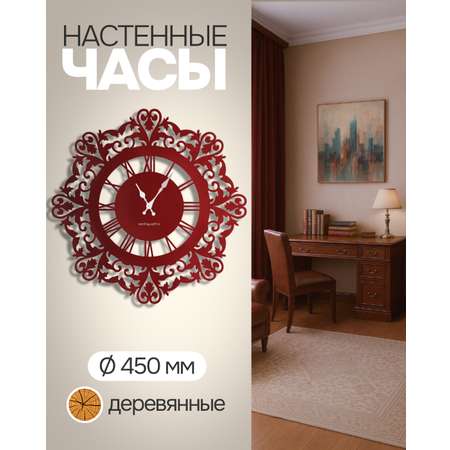 Интерьерные часы объединяют точность и декоративность, становясь стильным акцентом в любом пространстве. Диаметры 335 и 450 мм позволяют использовать их как в небольших помещениях, так и в просторных гостиных. Дизайны варьируются от строгой лаконичности до выразительных декоративных решений: природные текстуры, мягкие оттенки дерева, глубокие тона и спокойная пастель.