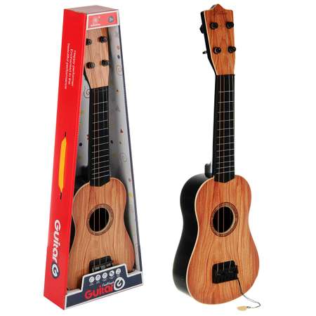 Игрушечная гитара в классической расцветке и качественном исполнении. Металлические струны, более серьезный уровень игры, медиатор на веревочке, компактные размеры, удобно ложится в руки. Прочные и долговечные материалы, внимание к деталям.
