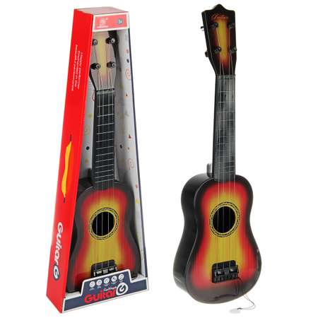 Игрушечная гитара в классической расцветке и качественном исполнении. Металлические струны, более серьезный уровень игры, медиатор на веревочке, компактные размеры, удобно ложится в руки. Прочные и долговечные материалы, внимание к деталям.