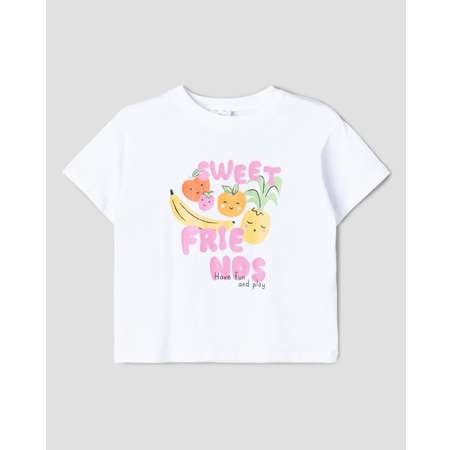 Белая футболка для девочки BabyGо с цветным принтом.