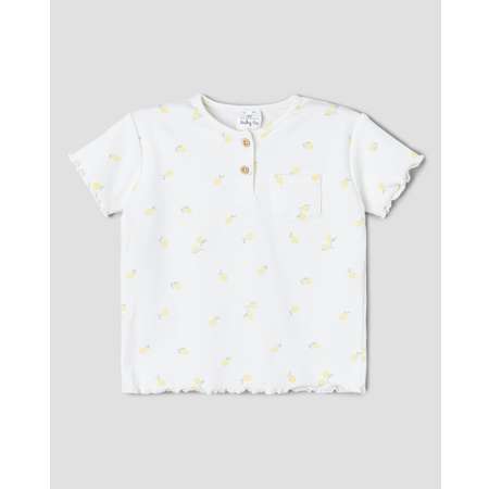 Футболка для девочки BabyGо, декорированная цветным принтом с лимонами.