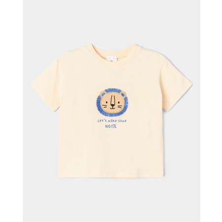 Бежевая футболка для мальчика BabyGо с объёмным декором в виде львёнка.