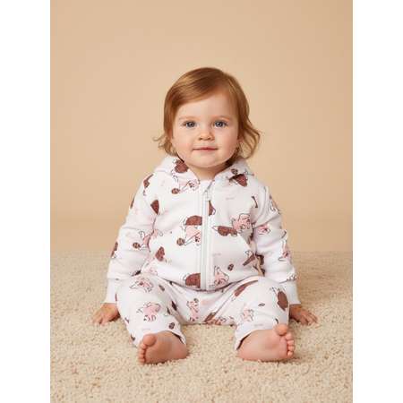 Мягкий и дышащий комплект для девочки, созданный для максимального комфорта. Толстовка и брюки обеспечивают свободу движений. Натуральный хлопок гипоаллергенен, не раздражает кожу и отлично пропускает воздух. Универсальный белый цвет легко сочетается с другими вещами. Практичный и нежный набор для ежедневной носки, прогулок и особых моментов. Легок в уходе – можно стирать в машинке.