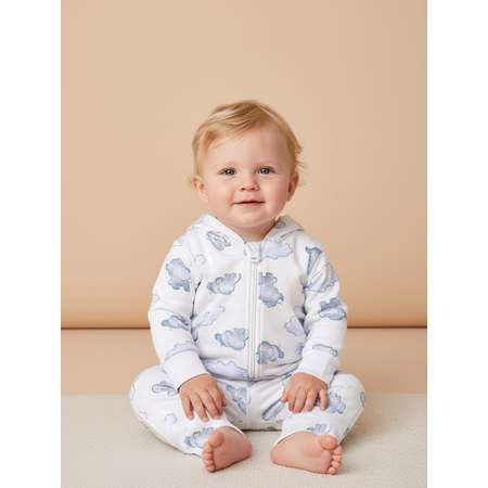 Мягкий и дышащий комплект для мальчика, созданный для максимального комфорта. Толстовка и брюки обеспечивают свободу движений. Натуральный хлопок гипоаллергенен, не раздражает кожу и отлично пропускает воздух. Универсальный белый цвет легко сочетается с другими вещами. Практичный и нежный набор для ежедневной носки, прогулок и особых моментов. Легок в уходе – можно стирать в машинке.
