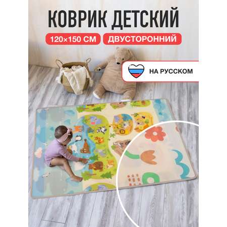 Развивающий коврик детский Mamagoods для ползания складной игровой 120x150 см Карта мира