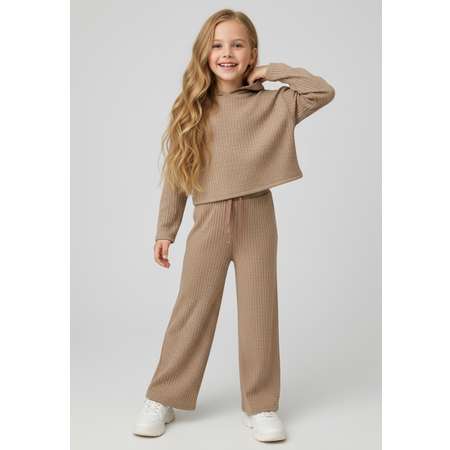 Комплект для девочки включает в себя: худи с капюшоном и брюки палаццо.