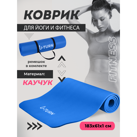 Коврик спортивный U-TURN для фитнеса и йоги синий