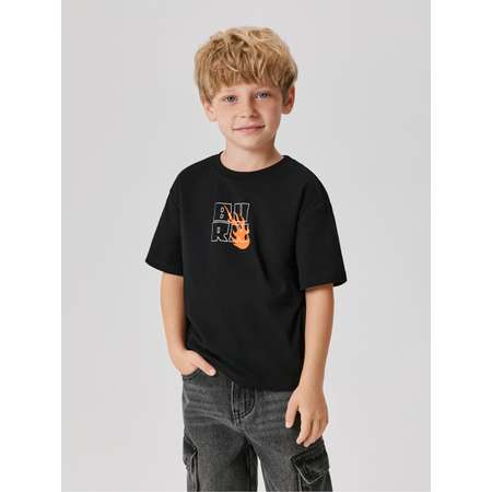 Детская трикотажная футболка для мальчика – это прекрасное дополнение к повседневному гардеробу ребенка. Модель посадки comfort и свободного кроя обеспечивает большую свободу движений, что важно для активных детей. Приспущенная линия плеча и чуть увеличенный объем рукава придают аутфиту расслабленный вид. Округлая горловина не мешает при одевании. Спереди и на спинке расположен принт с изображением огня и надпись "BURN" [англ. - "Гореть"], что добавляет изделию оригинальности. Модель представлена в двух цветах: черном и темно-зеленом. Футболка станет стильным и практичным выбором для создания повседневного образа.