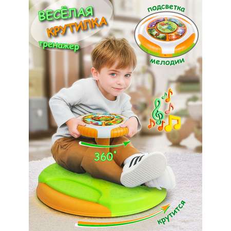 2 в 1, тренажер и музыкальная игрушка. 4 режима работы, проигрывает более 5 мелодий, издает звуки смеха, ударных, достраивает мелодию, пианино, эффектная подсветка всех кнопок, регулировка уровня громкости. Игрушка тренажер, ребенок садится на нижнюю платформу и крутится на ней вправо и влево. Игрушка крутилка изготовлена из прочных и долговечных материалов, интересная задумка, высокое качество исполнения. Детская игрушка станет замечательным подарком детям на Новый год и День рождения.