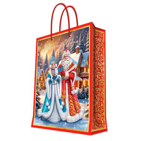 Пакет подарочный новогодний Феникс Презент Дед Мороз и Снегурочка с ламинацией 26*32.4*12.7см