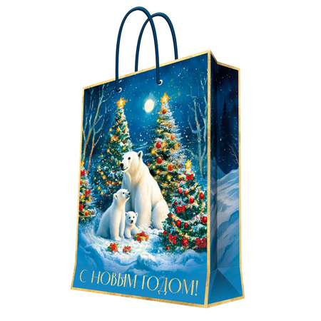 Пакет подарочный новогодний Феникс Презент Мишки на Севере с ламинацией 26*32.4*12.7см