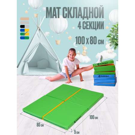 Мат спортивный Perfetto Sport № 21 100 х 80 х 5 складной 4 сложения салатовый/жёлтый