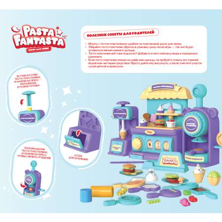 Тесто-пластилин Pasta Fantasta — необыкновенно мягкий и безопасный материал. Воздушное и приятное на ощупь тесто-пластилин сделано на основе пшеничной муки, не прилипает к рукам и не пачкает стол. Ребёнок легко справится с податливой массой и сможет вылепить фантастические фигурки с помощью формочек и инструментов из набора.
