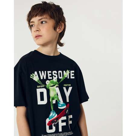 Чёрная футболка для мальчика Futurino с цветным принтом "Awesome day off".