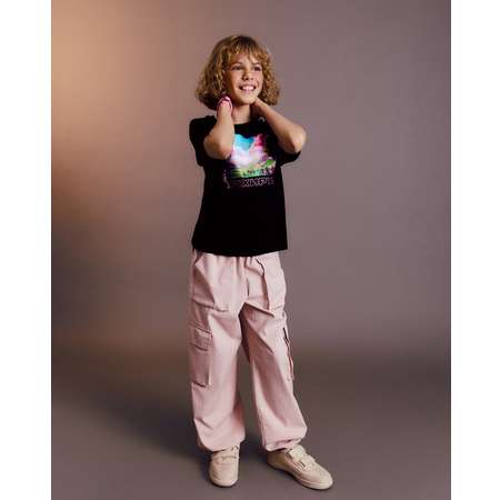 Чёрная футболка для девочки Futurino Fashion by Fixeye с красочным пиксельным принтом.
