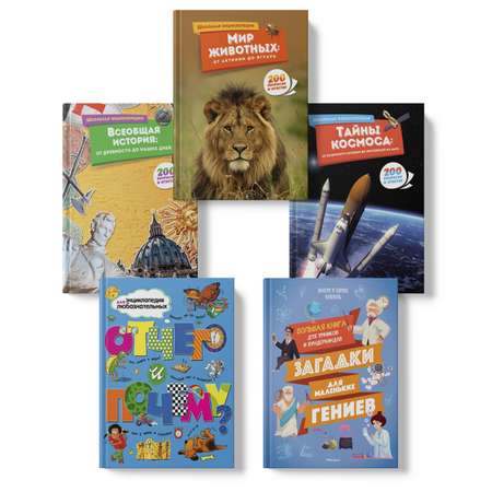В каждой энциклопедии найдутся ответы на более 200 вопросов, интересные факты и иллюстрации. А в книге головоломок ждут удивительные загадки, шифры и кроссворды, которые помогут посмотреть на мир под другим углом, а значит – стать гением!