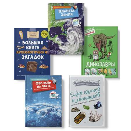 Узнать про устройство Земли, историю динозавров, секреты египетских пирамид помогут энциклопедии из комплекта. А в книге про минералы вы найдете инструкцию по изготовлению одного из них в домашних условиях! А еще 300 головоломок, задачек, лабиринтов в «Большой книге археологических загадок», которые интересно разгадывать и одному и с друзьями.