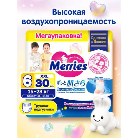 Цена на Трусики Merries 6 (15-28кг) 30 шт. - 2515 ₽.