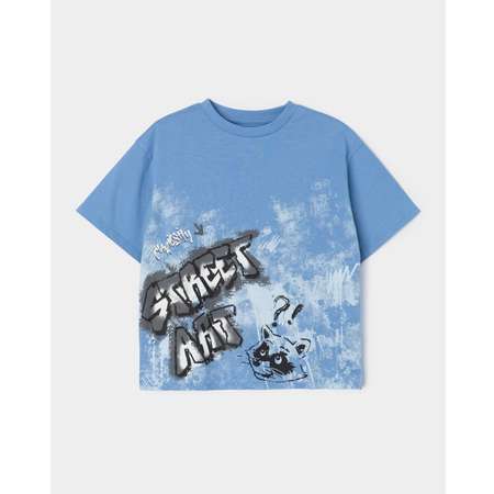 Светло-синяя футболка для мальчика Futurino с цветным принтом в стиле граффити.