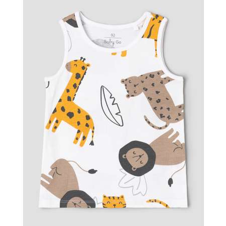 Белая майка для мальчика BabyGо, декорированная цветным принтом.