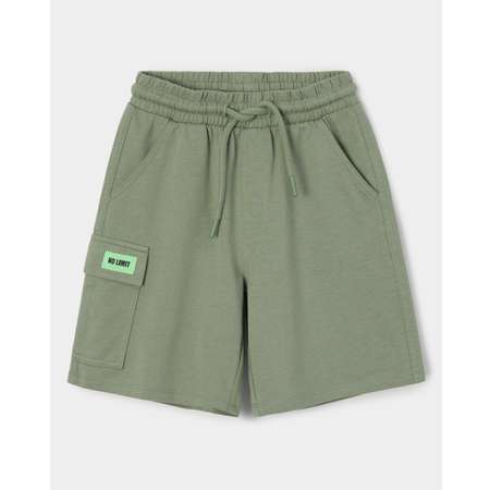 Шорты для мальчика Futurino в цвете хаки, с накладным карманом и контрастной нашивкой "No limit".