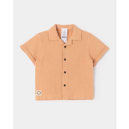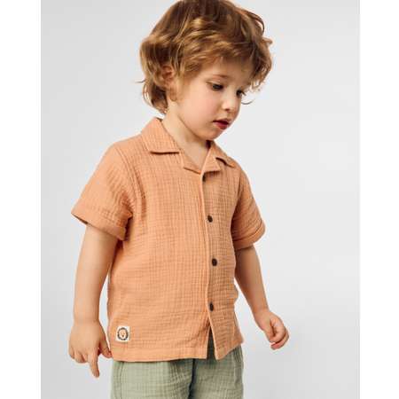 Текстильная летняя рубашка для мальчика BabyGо в терракотовом цвете, декорирована нашивкой.
