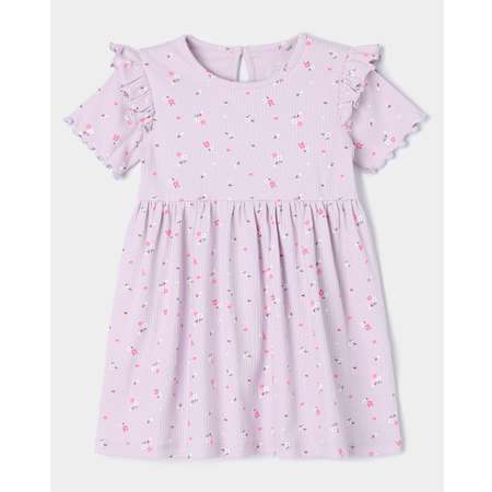 Сиреневое платье для девочки BabyGо с оборками и цветочным принтом.
