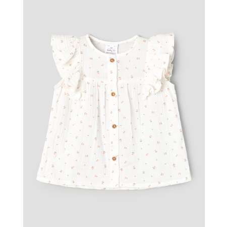Текстильная белая блузка для девочки BabyGо с цветочным принтом.