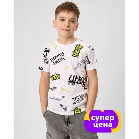 Белая футболка для мальчика Futurino с принтом в стиле граффити.