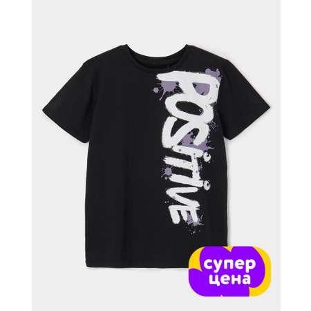 Чёрная футболка для мальчика Futurino с надписью в стиле граффити "Positive".