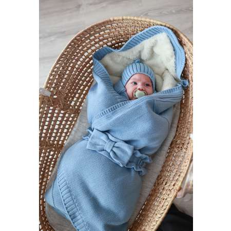 Вязаное полотно и невероятная мягкая шерпа нежно сочетаются в двухстороннем пледике.