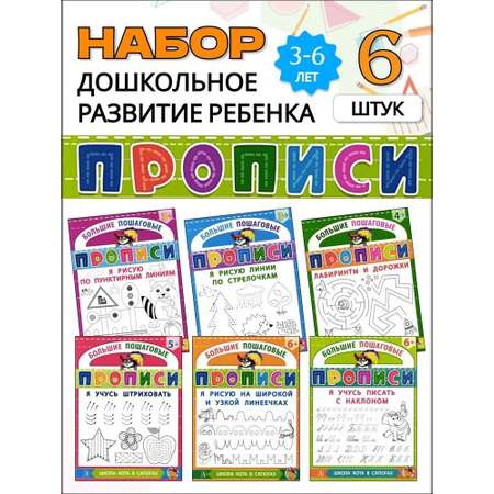 Отличный выбор для подготовки руки к письму! Это большой комплект из 6 развивающих пособий серии «Школа Кота в сапогах», созданный для поэтапного обучения.Набор идеально подходит для подготовки к школе мальчиков и девочек 5-6, 6-7 лет, а также подойдет как прописи для дошкольников младшего возраста (3-4, 4-5 года). Каждая тетрадь — это новый шаг в развитии навыков.Что входит в набор?