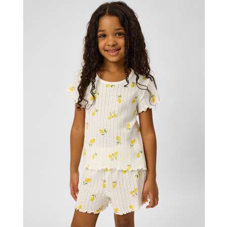 Белый пижамный комплект для девочки Futurino из футболки и шорт, декорированных узором и принтом с лимонами.