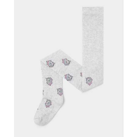 Светло-серые колготки для девочки Futurino, декорированные принтом с единорогами.