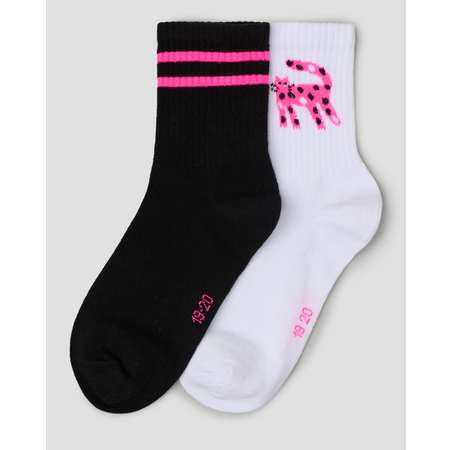 В комплекте Futurino две пары носков для девочки, декорированных ярким принтом - чёрные и белые.