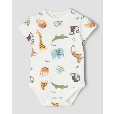 Белое боди для мальчика BabyGо с цветным принтом "животные Африки".