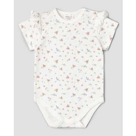 Боди для девочки BabyGо с узором и цветочными принтом, декорировано оборками.