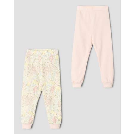 В комплекте BabyGо две модели легинсов в рубчик для девочки - с цветочным принтом и однотонные светло-розовые.