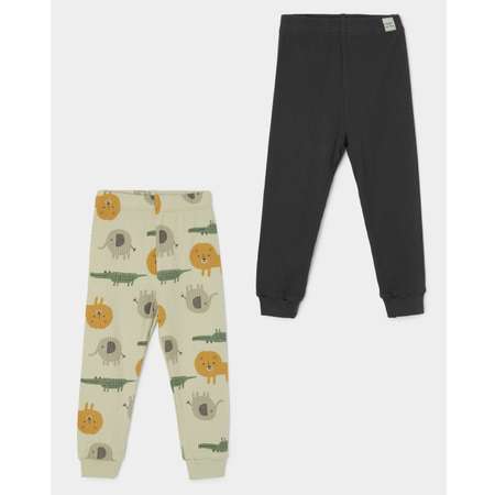 В комплекте BabyGо две модели брюк в рубчик для мальчика - тёмно-серые с нашивкой и зелёные с принтом "животные Африки".