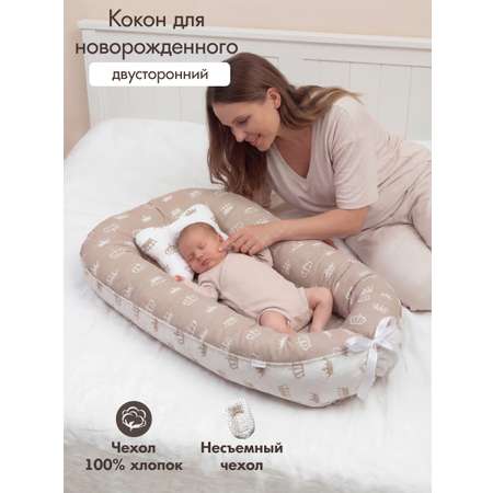 Матрас-кокон KUZA Гнездышко Бежевые короны 7007А6