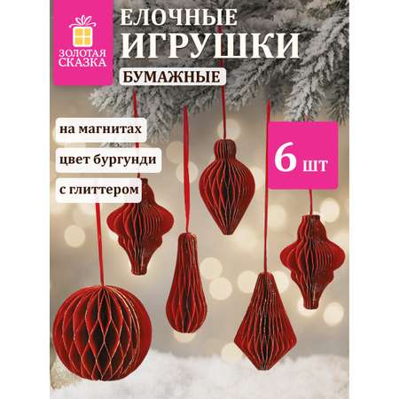 Елочные игрушки шары Золотая сказка шарики на новогоднюю елку бумажные с блестками набор 6 штук