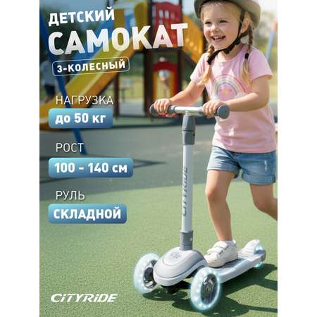 Самокат детский трехколесный CITYRIDE 120/76 складной с подсветкой СR-S5-08GY