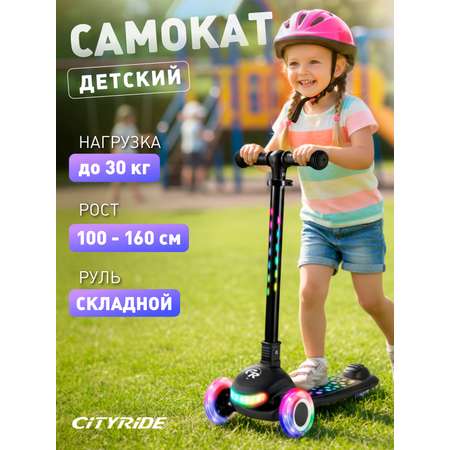 Самокат детский трехколесный CITYRIDE 120/90 складной с подсветкой СR-S5-09EB