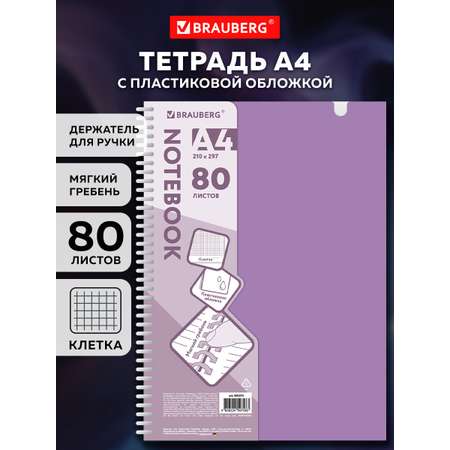 Тетрадь в клетку 80 листов А4 на мягком гребне с пластиковой обложкой и вырубкой для ручки BRAUBERG — идеальный выбор для школы, университета, офиса и личных заметок. Эта стильная тетрадь для записей формата А4 включает 80 листов в клетку, благодаря чему удобно вести структурированные записи. Прочная пластиковая обложка надежно защищает содержимое тетрадки от повреждений, а мягкий гребень обеспечивает комфорт при перелистывании страниц. Вырубка для ручки – практичное дополнение, чтобы пишущие принадлежности всегда были под рукой. Высококачественная бумага с белизной 100% гарантирует приятное письмо. Общая тетрадь 80 листов в клетку прекрасно подойдет для школьников, студентов и офисных сотрудников, сочетая удобство и функциональность в одном продукте. Эта тетрадь на кольцах станет надежным помощником в учебе и работе!
