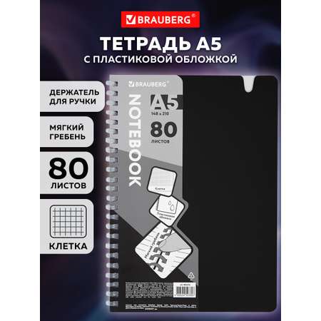 Тетрадь в клетку 80 листов А5 на мягком гребне с пластиковой обложкой и вырубкой для ручки BRAUBERG — идеальный выбор для школы, университета, офиса и личных заметок. Эта стильная тетрадь для записей формата А5 удобно размещается в сумке или рюкзаке, сочетая компактность с вместительностью. Внутренний блок содержит 80 листов в клетку, которые благодаря высокой белизне и плотности бумаги обеспечивают комфортное письмо и четкость записей. Мягкий гребень позволяет легко перелистывать страницы тетрадки, а пластиковая обложка надежно защищает листы от повреждений и влаги. Вырубка для ручки делает общую тетрадь максимально удобной и функциональной. Отличное решение для тех, кто ценит качественную канцелярию и ищет практичную тетрадь на кольцах в школу и офис. Эта тетрадь 80 листов в клетку станет надежным спутником для школьников, студентов и офисных работников, помогая структурировать информацию и сохранять порядок на листах.