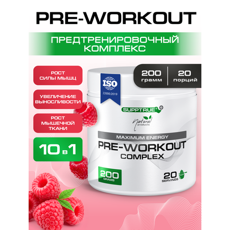 Предтренировочный комплекс 200 г. SUPPTRUE со вкусом малины, 20 порций